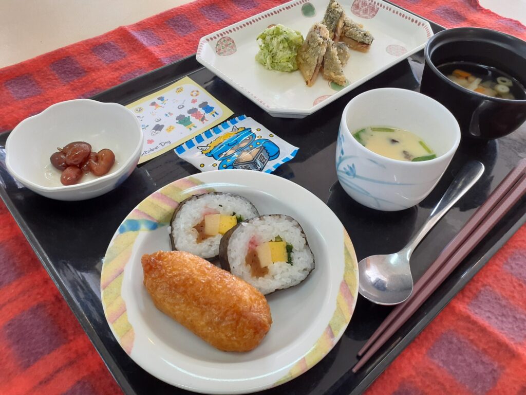 茶碗蒸し・恵方巻・けんちん汁・煮豆・金時豆・いわしの梅肉大葉フライ