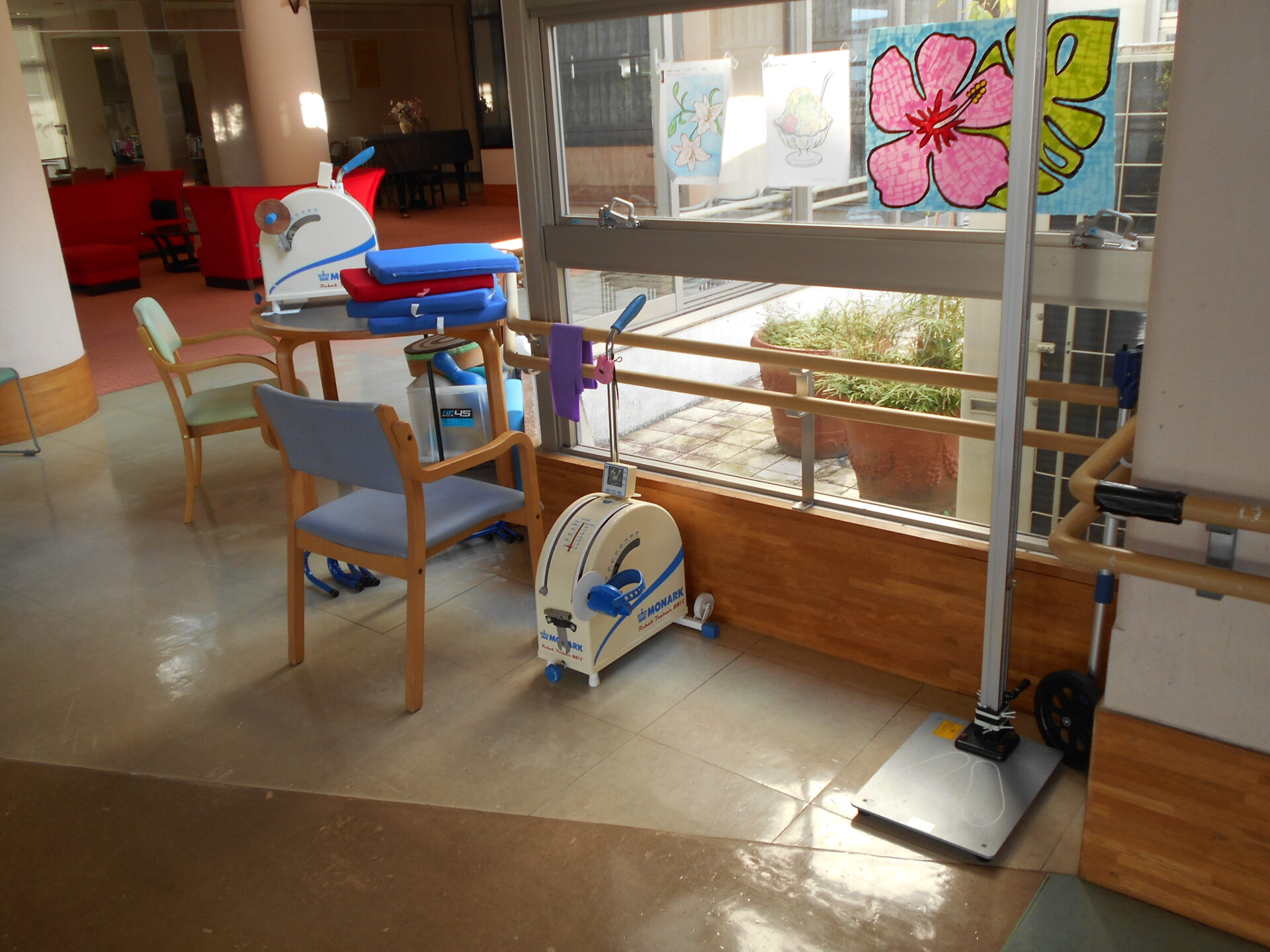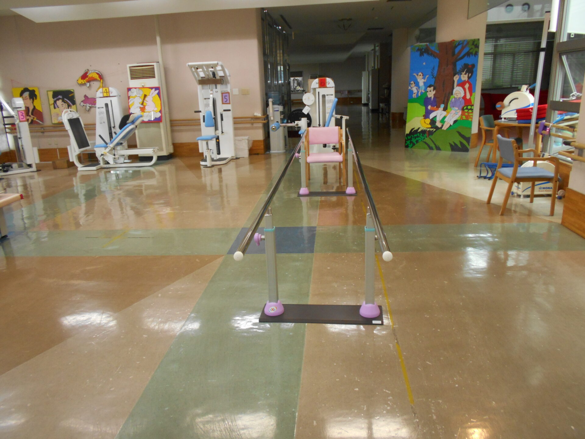 当施設は1周100mと広い歩行訓練コースがあり、雨天時でも安全に歩くことができますので皆さんに大好評です。